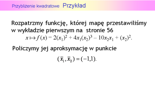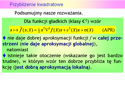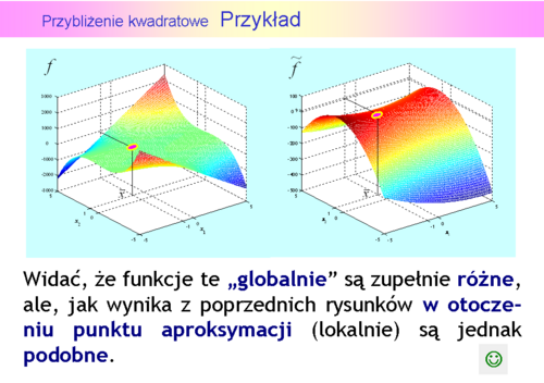 Widać, że otoczenie, w którym aproksymację uznalibyśmy za dobrą nie jest duże i jego kształt jest zbliżony do elipsy o osiach nierównoległych do osi współrzędnych kartezjańskich.