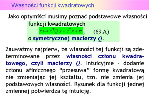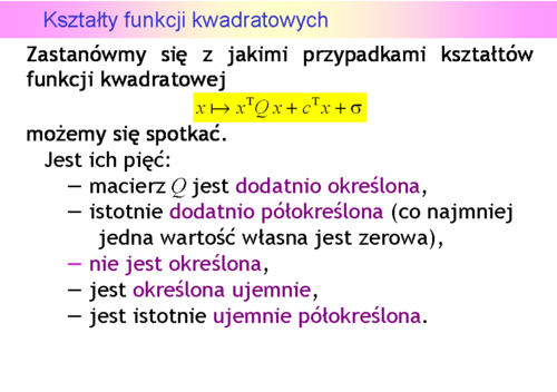 Intuicyjnie – dodanie członu afinicznego “przesuwa” formę kwadratową nie zmieniając jej kształtu, tzn. nie zmienia jej podstawowych własności.