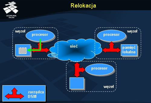 Drugie rozwiązanie próbuje zaradzić sytuacji, gdy do obiektu odwołuje się bardzo często pojedynczy proces lub grupa procesów zlokalizowanych na innym komputerze niż sam obiekt. Jeżeli założymy, że możliwa jest zmiana fizycznej lokalizacji współdzielonego obiektu (relokacja ), czyli umieszczenie go w pamięci lokalnej węzła, w którym pojawiło się żądanie dostępu, to potencjalnie możemy znacząco skrócić czas kolejnych dostępów do tych danych. Podejście to będzie opłacalne w przypadku aplikacji, w których występują zgrupowane, seryjne odwołania do obiektów z pojedynczych węzłów. W takiej sytuacji opłacalne będzie ponoszenie kosztów przenoszenia (potencjalnie dużego) obiektu między węzłami.
