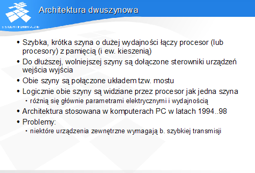 W przedstawionej strukturze nie ma już szyny wolnych urządzeń wejścia-wyjścia, a część połączeń szynowych została zastąpiona połączeniami typu punkt-punkt, o dużo większej przepustowości.