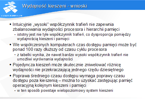 Intuicyjnie „wysoki" współczynnik trafień nie zapewnia zbalansowania wydajności procesora i hierarchii pamięci