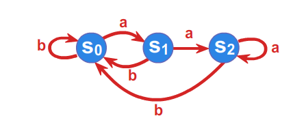 Automat będąc w stanie \(\displaystyle s_{i}\) po przeczytaniu litery \(\displaystyle a\) zmienia stan na \(\displaystyle s_{j}\) zgodnie z funkcją przejścia \(\displaystyle f(s_{i},a)=s_{j}\) .