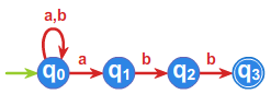 Automat ten, jak łatwo teraz zauważyć, rozpoznaje język \(\displaystyle L(\mathcal{A})=A^*abb\) .