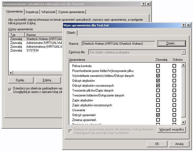 % setfacl -d -m group:testowa:wx bsk-lab1 % getfacl bsk-lab1 –-omit-header user::rwx group::r-x other::r-x default:user::rwx default:group::r-x default:group:testowa:-wx default:mask::rwx default:other::r-x
