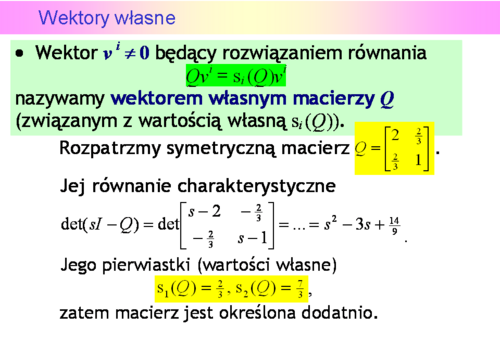Wektory własne nie są wyznaczone jednoznacznie, i nie jest to przypadek. W terminologii używanej w teorii metod optymalizacji wektory własne wyznaczają tylko kierunki (proste).
