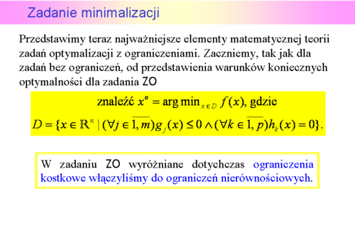 Analiza matematyczna zadań optymalizacji z ograniczeniami
