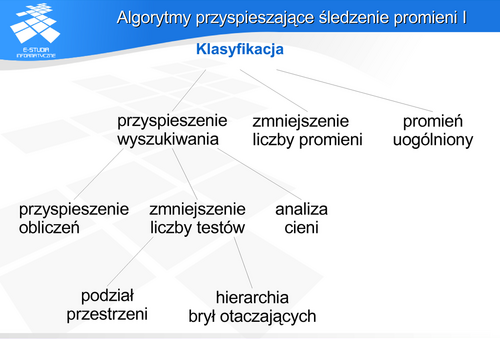 Podstawowym problemem śledzenia klasycznego ( i tak naprawdę każdej późniejszej modyfikacji metody) jest szybkie wyznaczenie przecięcia promienia z obiektem.