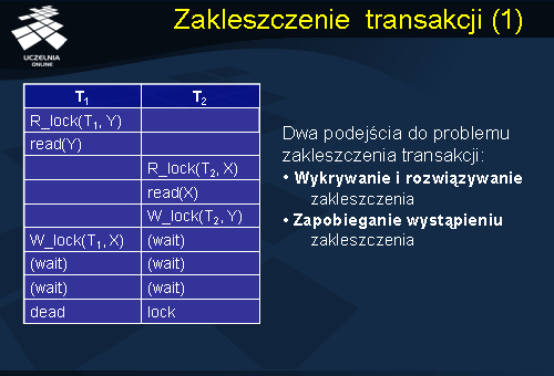 W systemach baz danych stosowane są dwa podejścia do problemu zakleszczenia transakcji: