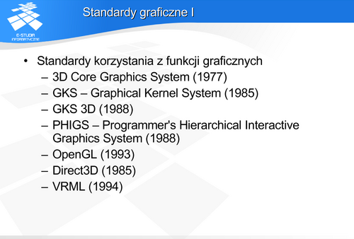 Niezależnie popularność zyskał Direct3D zaproponowany przez firmę Microsoft dla potrzeb obsługi gier komputerowych. Jako DirectX jest najpowszechniej akceptowanym standardem w środowisku kart graficznych.