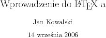 Każdy szanujący się dokument powinien zaczynać się od tytułu, autora i ewentualnie daty powstania. Dlatego na początku części głównej można umieścić następujący kod.