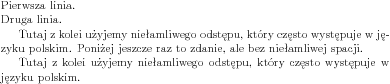 To słowo trudno jest złamać tak, aby odstępy w linii nie były za duże lub za małe.