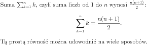 \noindent Suma $\sum_{k=1}^n k$, czyli suma liczb
