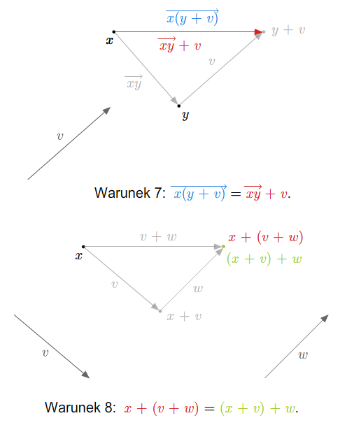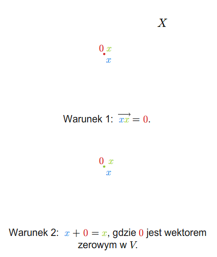 6. \(x=y\) wtedy i tylko wtedy, gdy istnieje \(z\in X\) takie, że \(\overrightarrow {zx}= \overrightarrow {zy}\),
