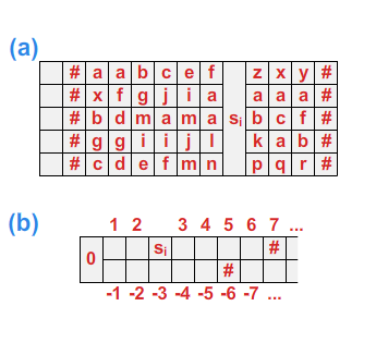 W tym modelu zakłada się, że głowica ma do dyspozycji nie tylko jedną, ale wiele taśm, na których może zapisywać i odczytywać symbole. Zakłada się przy tym, że słowo wejściowe znajduje się na pierwszej taśmie. Aby symulować maszynę wielotaśmową na jednej taśmie, należy zamienić alfabet taśmy na alfabet \(\displaystyle (\Sigma_T)^k\), gdzie \(\displaystyle k\) oznacza ilość taśm. W tym momencie zapis na taśmie \(\displaystyle i\)-tej jest realizowany przez zmianę odpowiedniej współrzędnej litery z nowego alfabetu (zob. Rys. 4.a). Czyli w opisywanym przypadku funkcja przejść będzie operowała na następujących zbiorach: